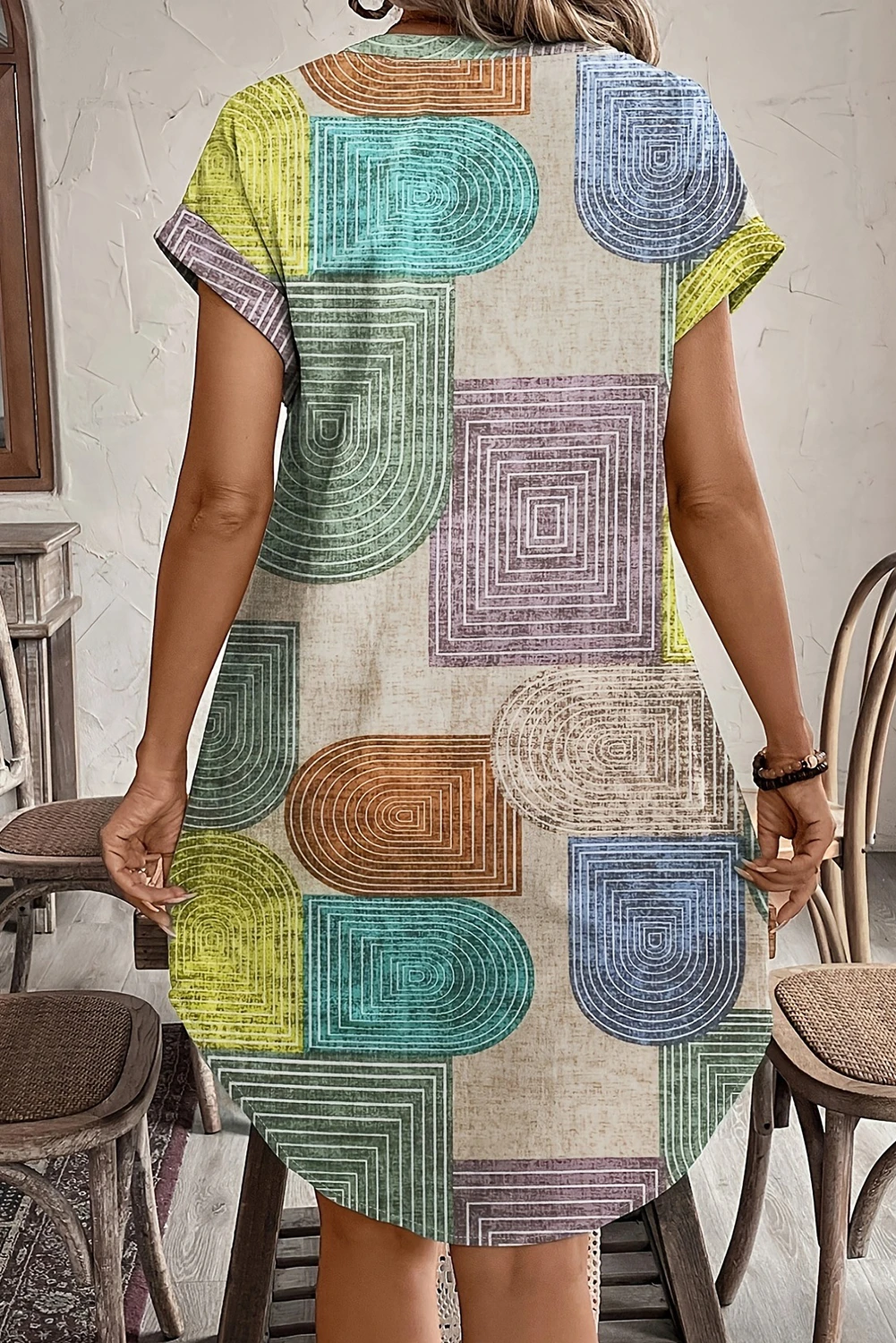 Be the first to review “Multicolour Boho Geometric Print Button Up Mini Dress”
